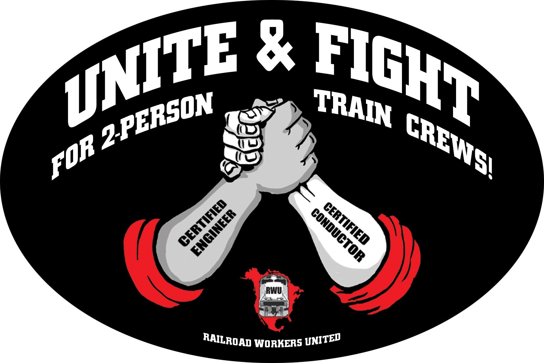 Bumper Sticker (5 stickers): "Unite & Fight for Two-Person Train Crews"
