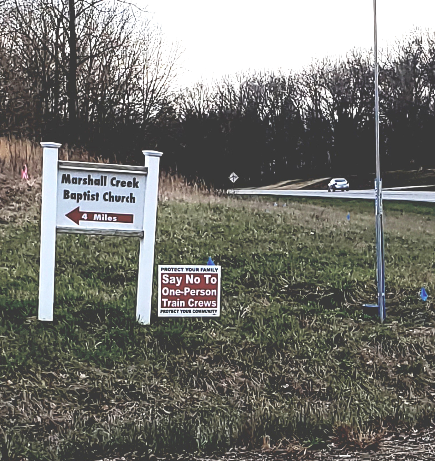 These 24" X 18" UNION MADE signs are made of corrugated plastic and are extremely durable and can withstand rain, snow, and wind.They are great to display not only in your own yard but also in prominent area places to generate public interest in the fight for two person train crews. They are ALSO great to display around the rail yards and on your union bulletin board.They are printed on both sides and come with a pair of EZ Sign Stakes. *THIS LISTING IS FOR ORDERING ONE PACK OF TEN SIGNS! We also have them in packs of 5, 15 or 20. Contact us if you want more. We can arrange drop shipping direct from the manufacture. Ask your Local, Division or General Committee to order a bunch!