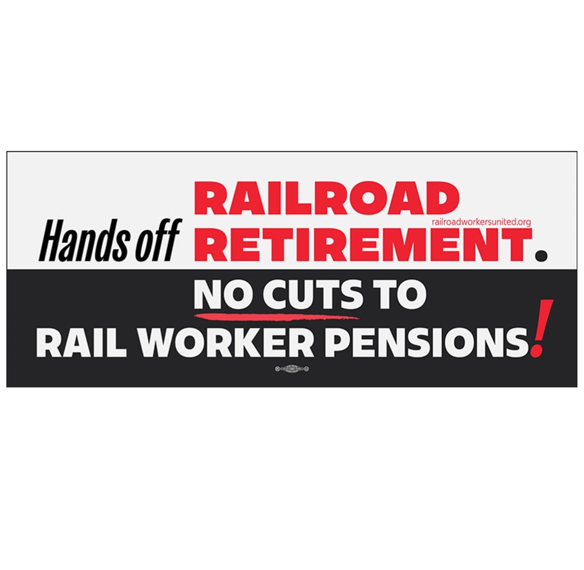 BUMPER STICKER: "Hands Off Railroad Retirement: No Cuts to Rail Worker Pensions" (choose desired amount from drop-down menu)