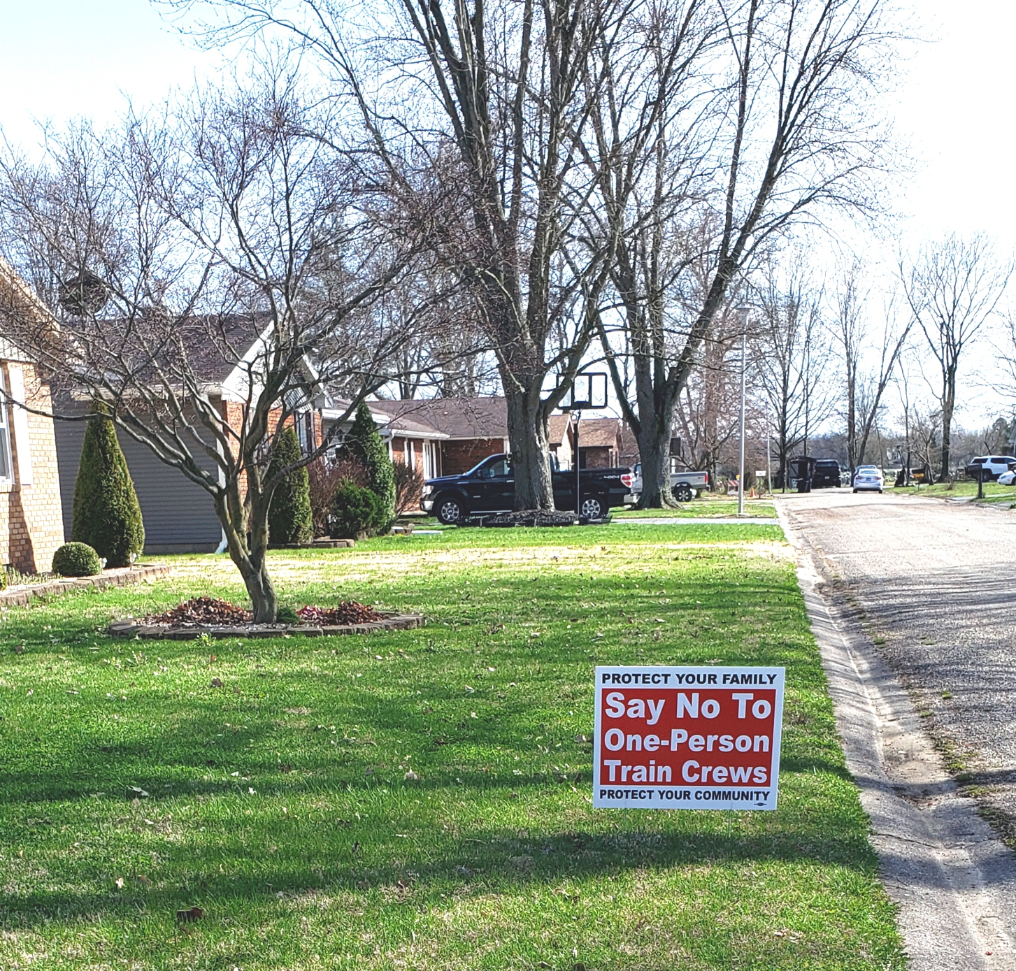 These 24" X 18" UNION MADE signs are made of corrugated plastic and are extremely durable and can withstand rain, snow, and wind.They are great to display not only in your own yard but also in prominent area places to generate public interest in the fight for two person train crews. They are great to display around the rail yards and on your union bulletin board.They are printed on both sides and come with a pair of EZ Sign Stakes. *THIS LISTING IS FOR ORDERING FIVE SIGNS. We also have them in quantity packs of 10, 15 or 20. Contact us if you want more. We can arrange drop shipping direct from the manufacture. Ask your Local, Division or General Committee to order a bunch!