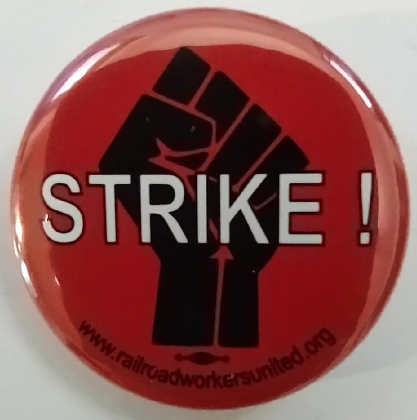 Button in full color is 1 i inch diameter. Join in solidarity with hundreds of thousands of workers in industries across the USA . Tell the rail carriers, managers, stockholders, and most importantly your fellow workers how you feel! The more you buy the cheaper they are! 10 for $17.50; 30 for $45.00; or 50 for $60.00!
